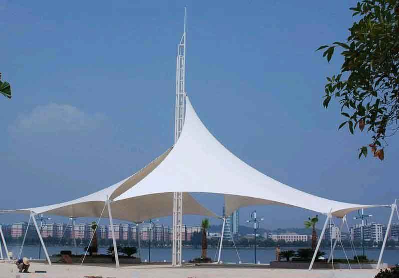 一般经济实用膜材,也就是小区业主方规定全部膜结构工程欧式雨棚新项目质优价廉,坚固耐用,可采用国内靠谱生产厂家的膜材(质保期大概三年-十年上下),假如小区业主方有不必要的项目计划,规定高些一些,能够采用進口膜材(质保期大概八年-二十年)。错误观念:针对膜材品质许多小区业主方觉得膜布越厚就越好,越重越好,那样的膜材看见牢固经久耐用,其实不是,膜布是不是牢固关键指标值是抗压强度(纬向/纬向)和回弹性抗压强度(纬向/纬向),因此在挑选膜材时最先要掌握膜材的各类主要参数,预支撑力、使用年限、应用作用、构造跨距、阻燃等级,大切应力这些。「PVC膜材」一般 是PVC镀层在玻纤纺织物上,镀层较为薄。具备耐高低温试验、抗氧化性的特性,也是有高的抗压强度和比较好的透光度。